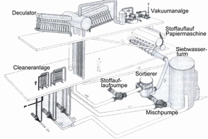 Alle Anlagenteile und Rohrleitungen zwischen der Mischbütte und Maschinenbütte und dem Stoffauflauf der Papiermaschine werden unter der Bezeichnung Konstantteil zusammengefaßt.